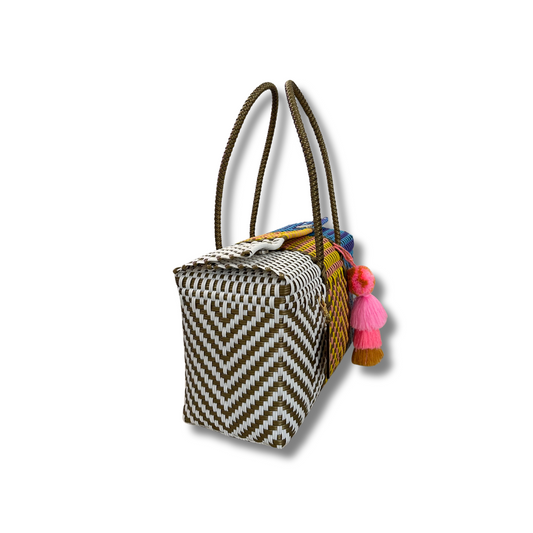 Our bags are made by talented artisans using traditional techniques to ensure durability and quality. They are made of recycled plastic, so they are waterproof, easy to wash and you can fold them to take them on a trip. Our recycled plastic bag are perfect for daily use, the beach, grocery shopping, going on a picnic, among other options. The important thing is that you feel comfortable using Frances Tote Bag.