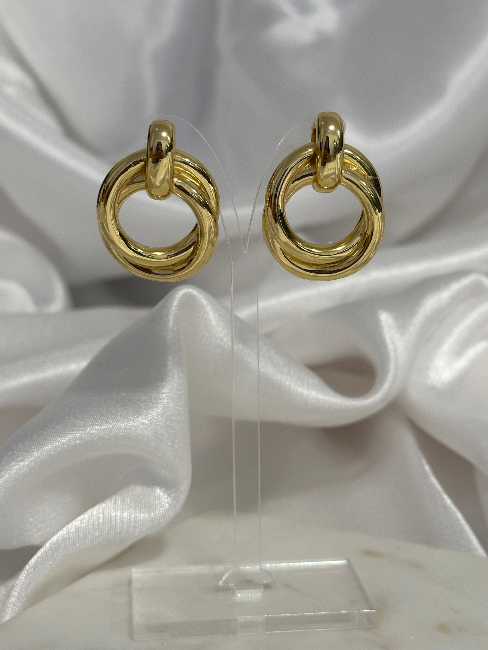 The Twisted Glow Earrings are intertwined hoops with a golden sheen that makes them elegant and easy to style. They have a modern yet classic design.